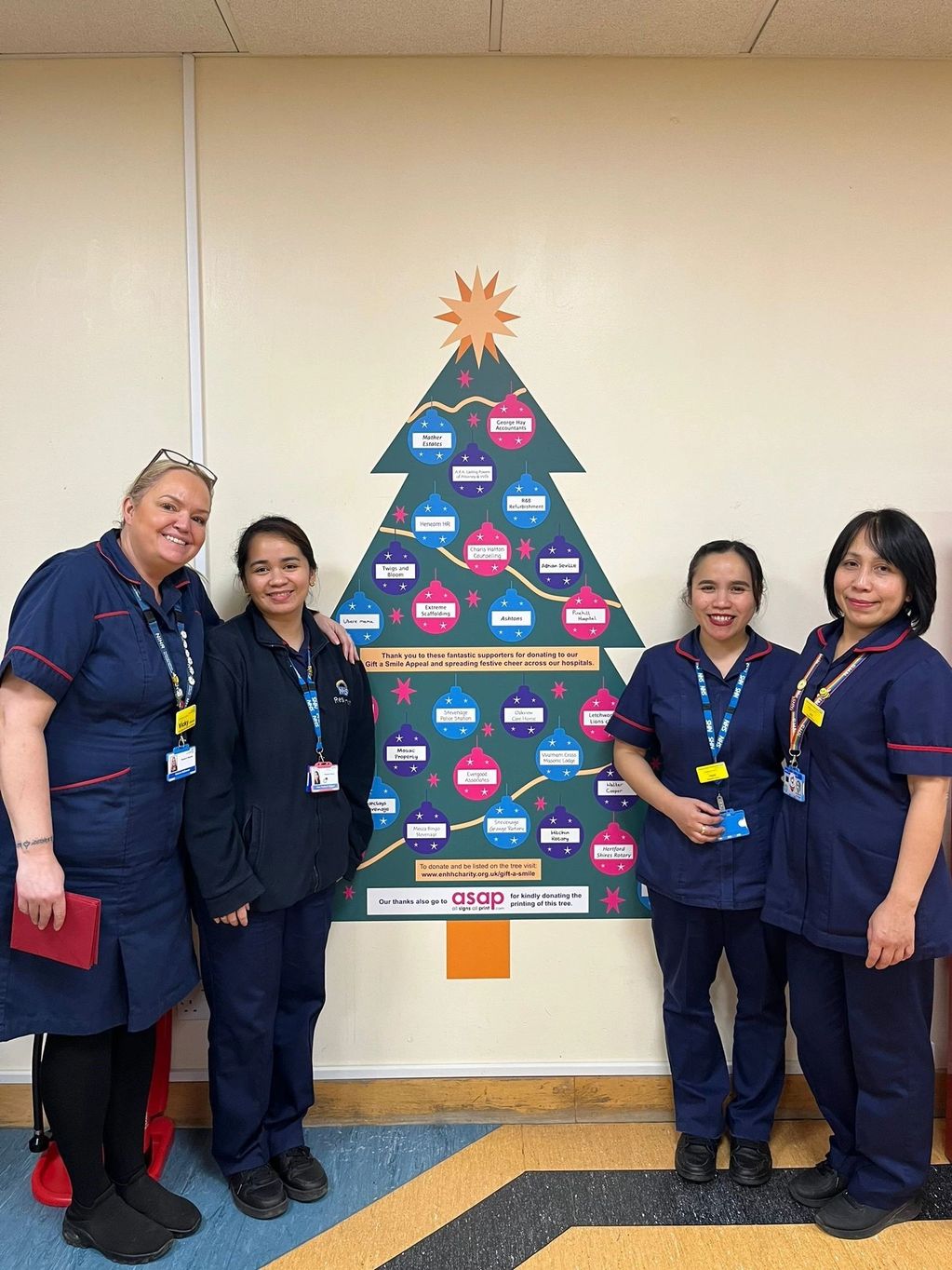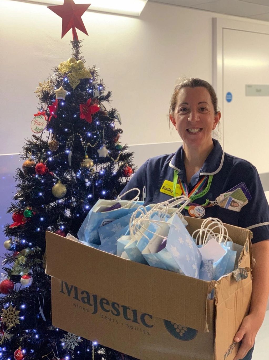 "Here are some photos of the gift bags being distributed this week in preparation for Christmas day which you are welcome to share with anyone who helped with the appeal and you can also use for your own communications. There is also a photo of our supporter Christmas tree which you were included on, it was lovely to share with our hospital community that you generously gave and supported."